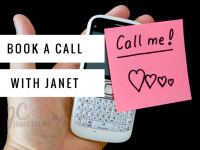 Or start with a Free Discovery call with Janet now by clicking on the image below to select a time that suits you